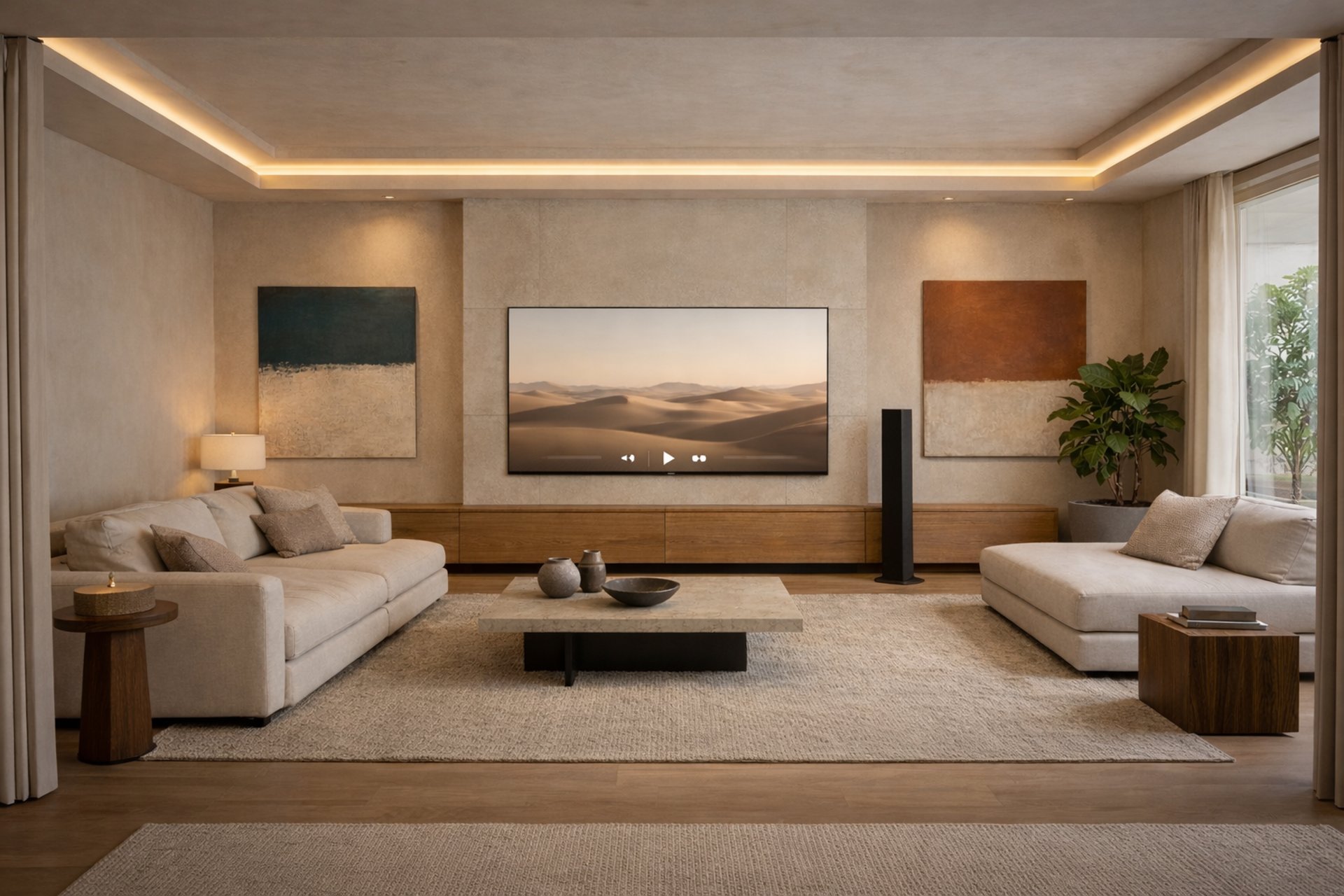 La televisión se integra en la arquitectura y se activa solo cuando tiene sentido, adaptándose al momento y al espacio.